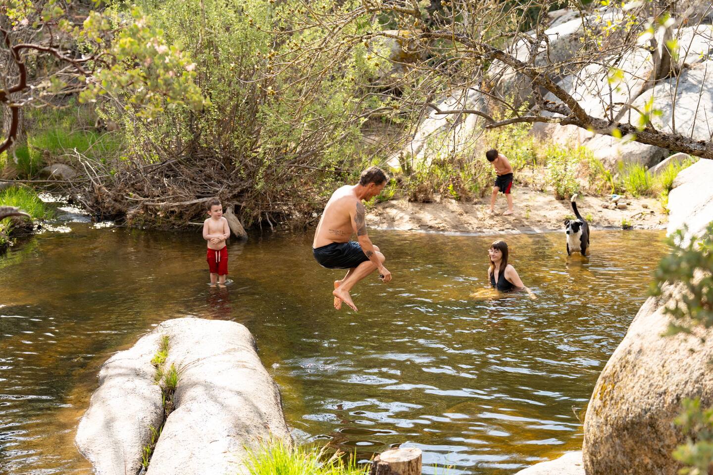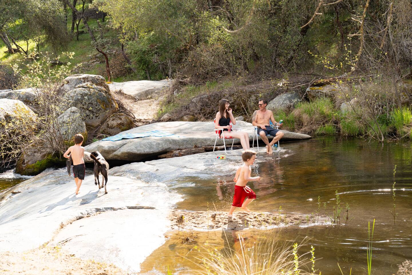On our 5 acre lot there are TWO houses including yours which are both rented on Airbnb. The distance between is about 400’ and they are separated by trees making them both private. Additionally we rent a camping space at the top of the driveway which is also about 300’ away. This is also separated by trees. The river is shared by all guests. The driveway is shared by all guests.