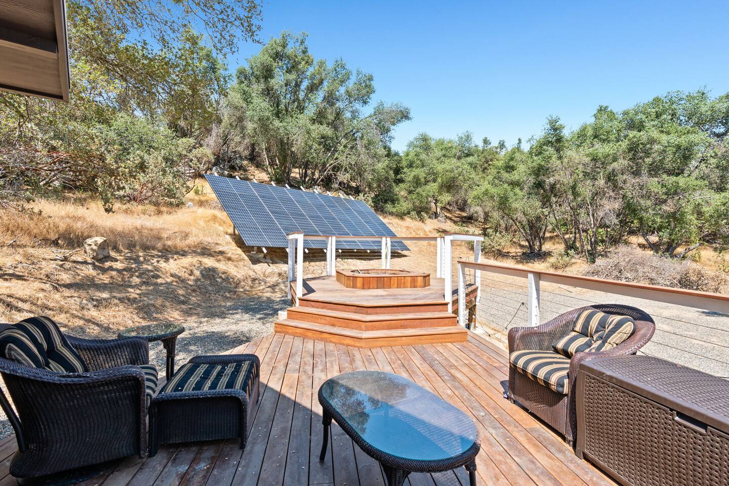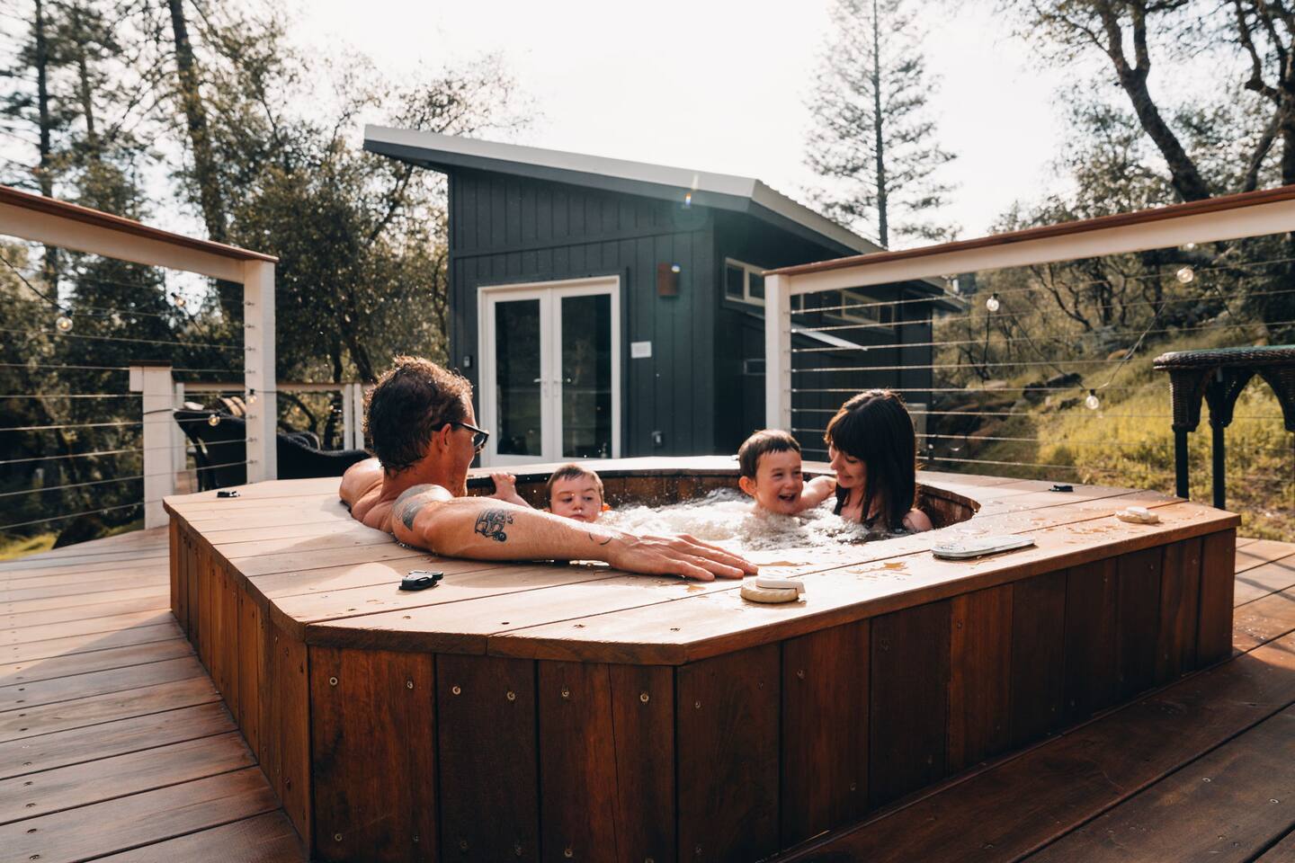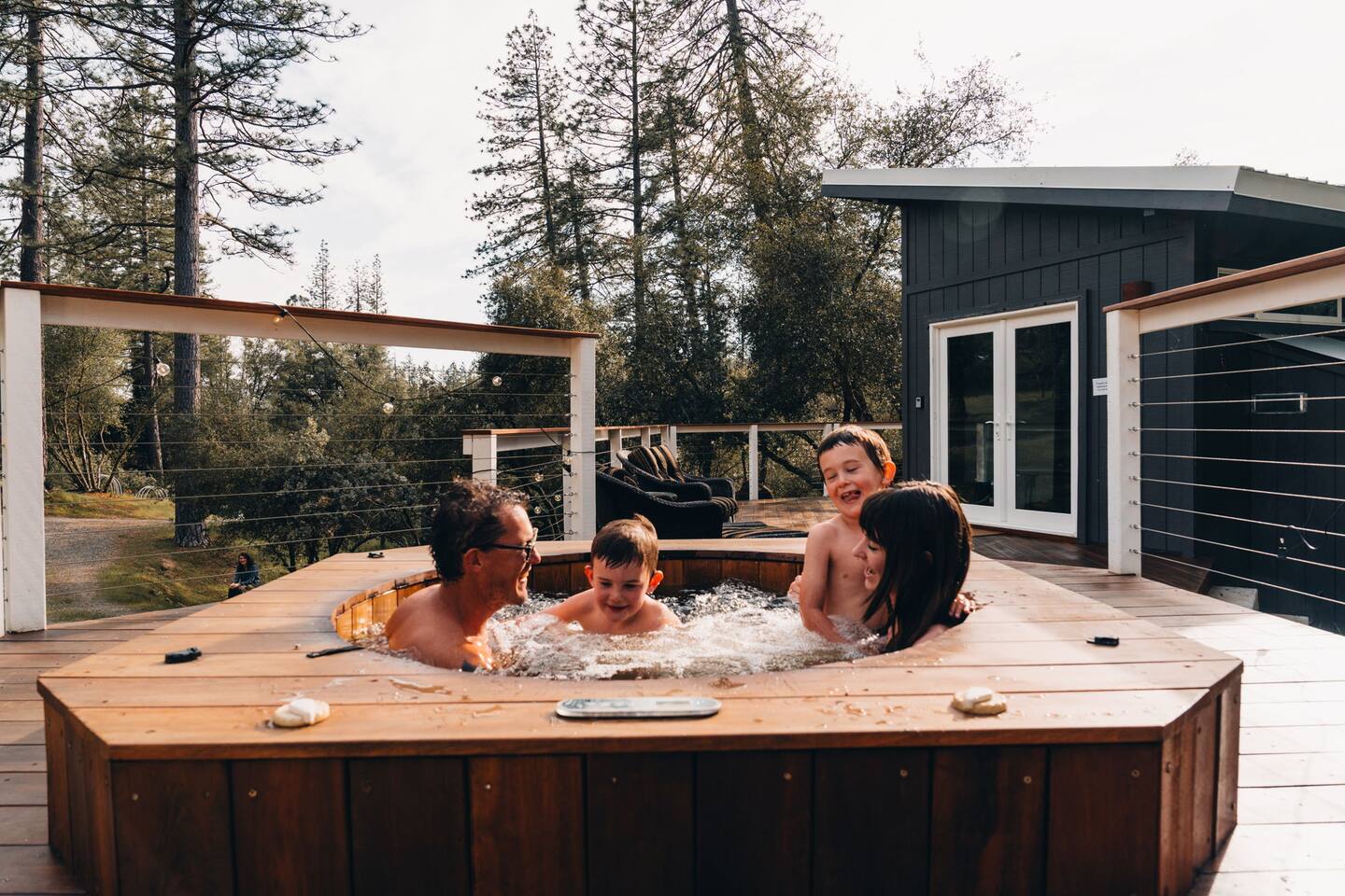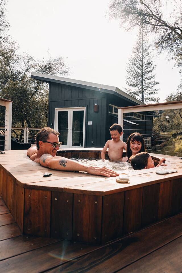 - FIRE PLACE AND FIRE PIT - Wildfire is a very real risk in the Sierra Nevada Foothills. Please be aware of burning restrictions, and feel free check in with the host if you have any questions. Guests will need to bring their own firewood (including paper, tinder and kindling) in order to use the outdoor fire pit. - HOT TUB - The hot tub is a custom built cedar hot tub that is exceptionally reliable. As you can see from our reviews it works flawlessly for 99 out of 100 of our guests. We take pride in ensuring it is always available by: - Ensuring we carry spare parts on hand - Wifi monitoring of the system status - Having a dedicated Hot Tub Maintenance Specialist available at short notice. Very occasionally however parts can fail, and we will communicate to you in good time if this is the case and we ask that you be patient in these situations. You can help us by: - Not attempting to adjust any settings - Only turning on the Jets and changing the temp as needed - Observing the Max Temp of 100 Degrees - Trying to prevent too much water from spilling out. Additionally, we change the water on the hot tub regularly to ensure the best guest experience. As the listing is usually fully booked, if your trip happens to fall on a day where this is the case, then the hot tub may not be fully heated for when you arrive, but it will reach temp by the evening. - WIFI - We have a dedicated Starlink servicing the home. Again, the vast majority of the time the wifi is operational, but weather, hardware failure, and service downtime can affect the availability of this. We manage this as best we can by: - Having a UPS to prevent power surges. - Holding back up hardware in the event of failure - Having a maintenance person available at short notice. - Good 5G Cell coverage is available on Verizon, but not AT&T We ask for your patience and understanding in the event that Wifi is down. - POWER OUTAGES - Whilst uncommon, here in the mountains power outages occur more regularly than in the city, particularly during periods of intense weather like wildfire season and snow storms. We provide a generator for your convenience that covers lights, wifi, outlets and refrigerator, but not the hot tub or the heating and cooling. In the event that the power goes out, our maintenance specialist will be on call, but we may require your assistance also.