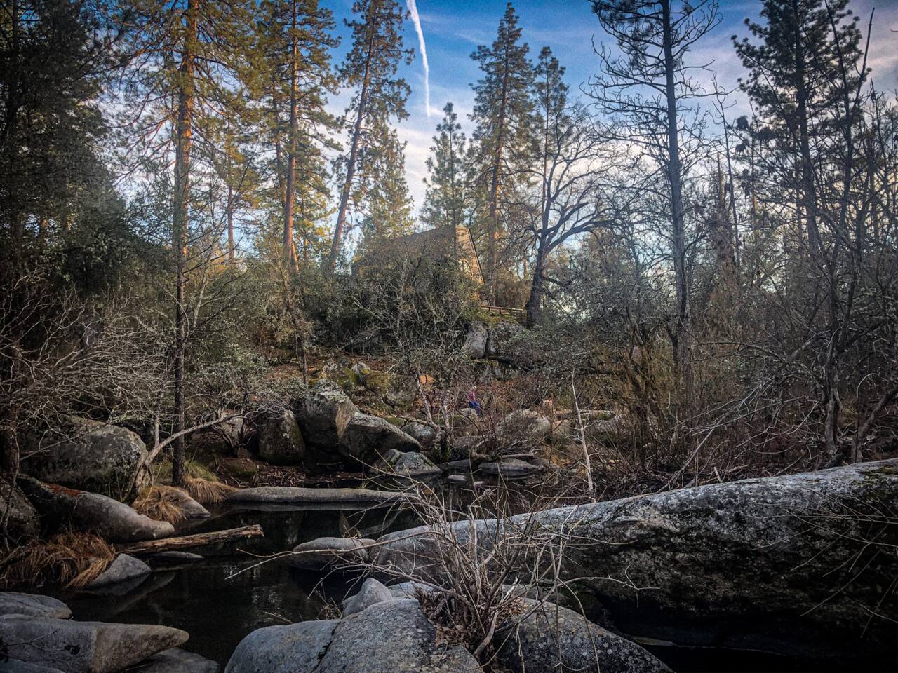 I designed & built this architectural cabin specifically for couples looking to experience a unique and beautiful location that feels like a mini Yosemite. It has a custom cedar hot tub that gives the PERFECT viewing place for the expansive night sky with shooting stars a plenty. Also has a swimmable River with jaw dropping granite features & rock pools. Double shower & sleek design features, you may just spend your whole trip, right here :)
